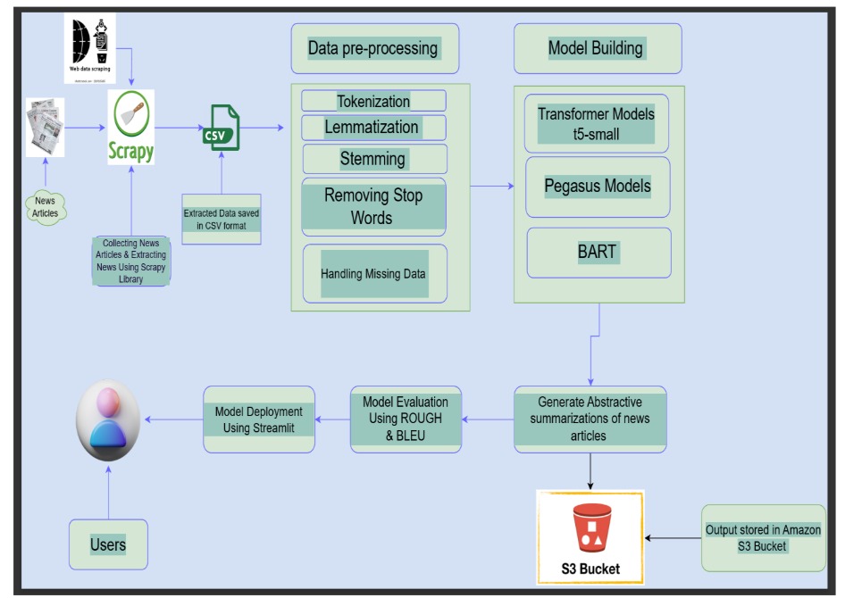 Problem Statement: To maintain competitiveness and relevance in the news industry, there is a critical need to streamline the process of generating news summaries from existing articles. The project aims to reduce the time and manual effort involved in creating new, summarized articles by implementing an automated system. This system should not only expedite the news writing process but also ensure the accuracy and quality of the content being produced.