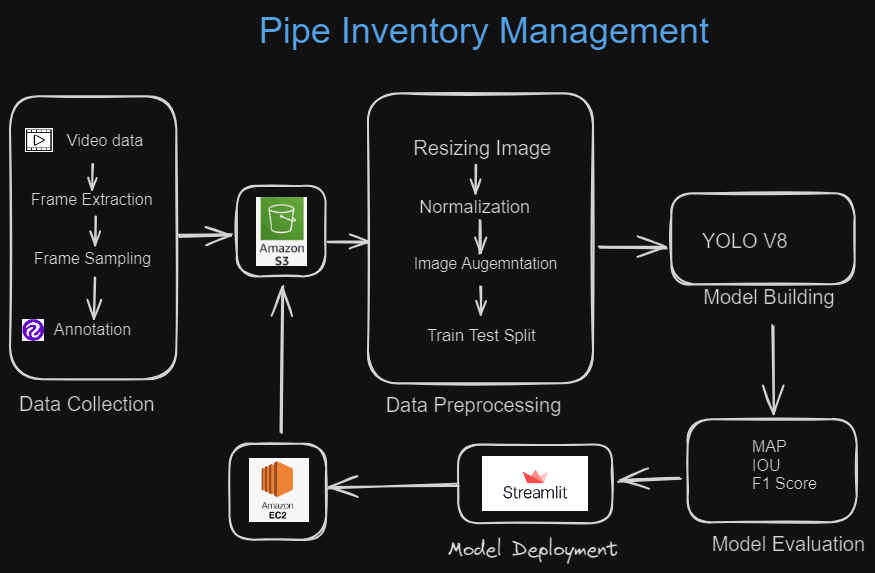 Problem Statement: In an effort to enhance operational efficiency and streamline inventory management, there's a pressing need for an automated solution capable of accurately detecting and categorizing iron pipes. By employing advanced image processing and machine learning technologies, the project aims to provide a reliable system for real-time identification, counting, and categorization of pipes, thereby reducing manual labor and improving accuracy in inventory records.